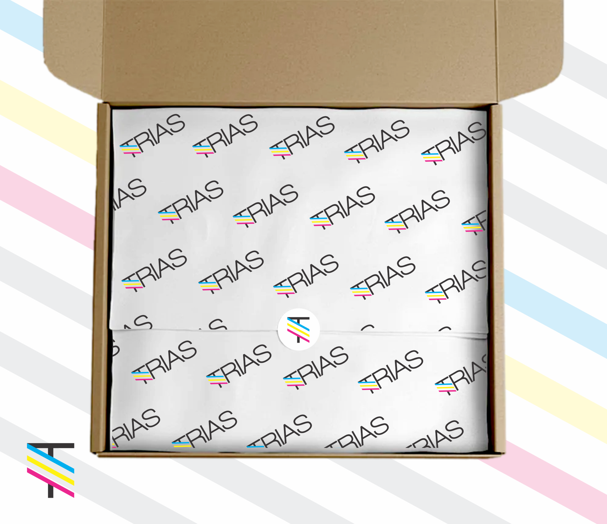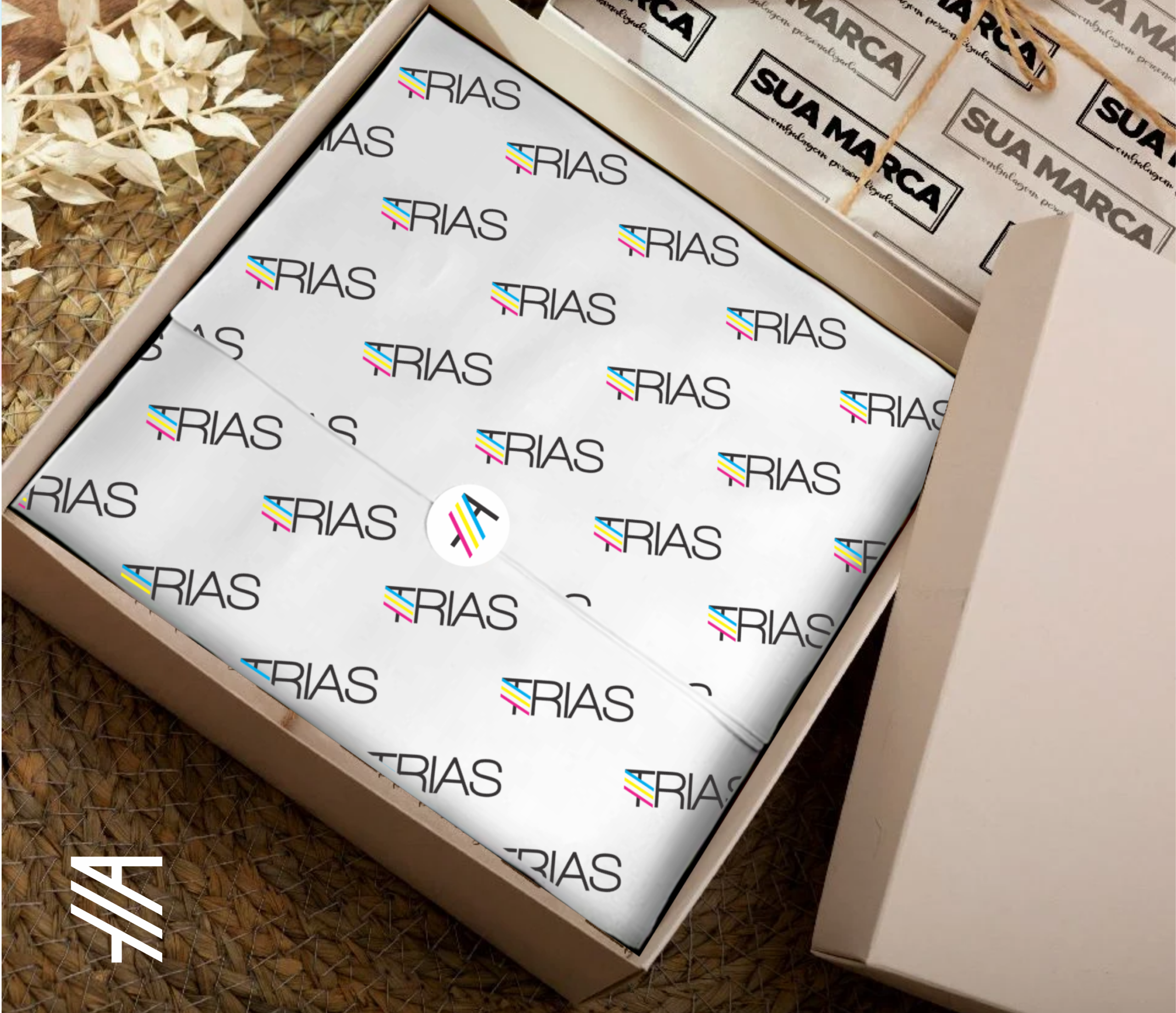 Papel seda de alta qualidade destinado ao envolvimento e proteção de produtos. O material oferece leveza e sofisticação, permitindo personalização conforme a identidade visual da marca.